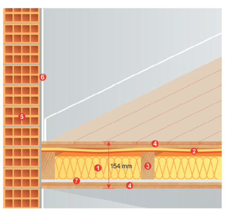 Звукоізоляція міжповерхових перекриттів на увазі використання ізолюючого шару безпосередньо між поверхами в несучої частини конструкції. Конструкція міжповерхового перекриття складається з дерев’яних балок, встановлених з кроком 500 – 1 000 мм. Простір між балками заповнюється плитами з мінеральної вати, зверху укладається підлогове покриття, а з нижньої сторони до каркасу підшивається облицювальний матеріал. Під верхнім шаром покриття для підлоги укладається звукоізоляційна мембрана TECSOUND® FT75.
