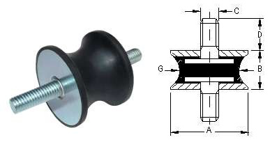 Серія віброізоляторів з гуми, призначених для гасіння середніх і високих частот. Ізолювати вібрації, створювані агрегатом, із застосуванням ізоляційних опор, означає позбавити його від натуральної опорної поверхні, і встановити між агрегатом і точкою опори належні еластичні елементи.