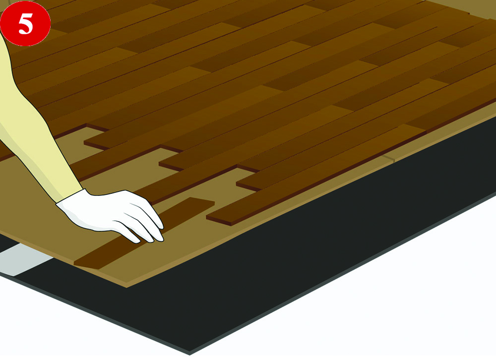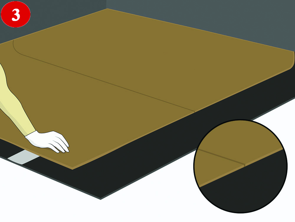 3. Разложите звукоизоляционную мембрану Tecsound на вспененный полиэтилен в шахматном порядке таким образом, чтобы перекрыть его швы. Укладка производится стык в стык без нахлестов.